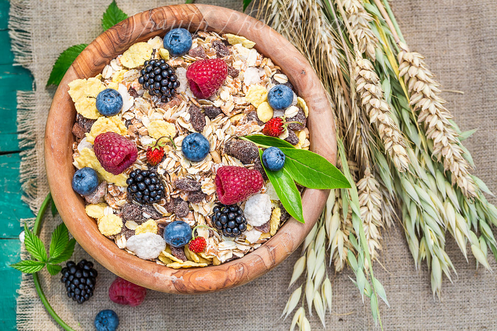 Sastāvdaļas: 15 g auzu pārslu, 0,5 ābols, 1 tējk. Medus, 1 tējk. ciedru riekstu, 1 tējk. smalcinātu valriekstu, 0,5 banāna, 1 ēdk. Rozīņu, 3-4 žāvētas plūmes.